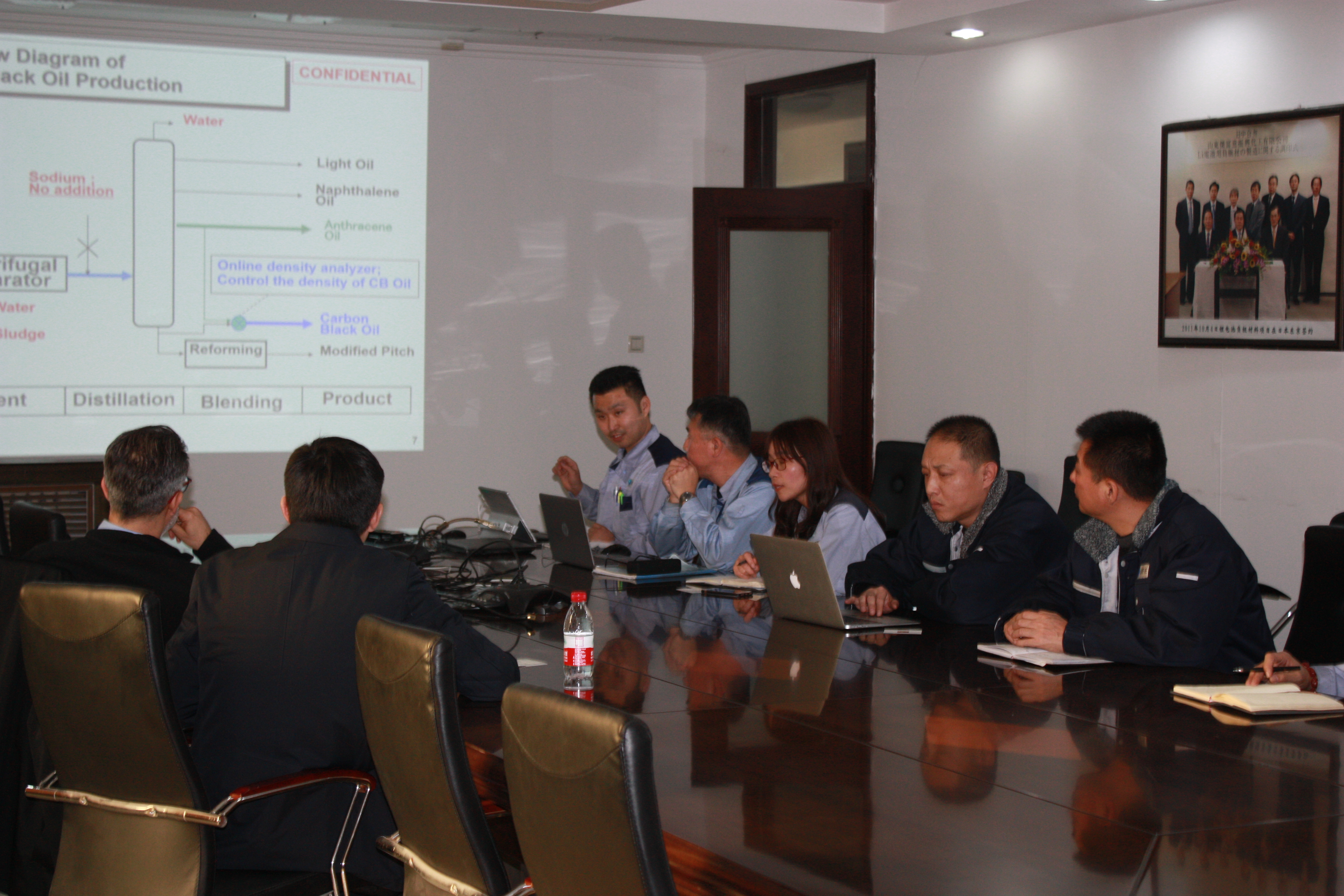 Cottrell Todd一行首先在會(huì)議室進(jìn)行座談,詳細(xì)了解杰富意公司基本情況,主導(dǎo)產(chǎn)品組成架構(gòu),焦油、炭黑油、蒽油等炭黑原料油的成分比例、數(shù)量等情況及后期炭黑的市場預(yù)測、炭黑原材料市場趨勢等。并依據(jù)山東杰富意公司和棗莊杰富意公司實(shí)際制定了較為詳細(xì)的國內(nèi)炭黑油和蒽油的銷售方案,對蒽油出口印度博拉工廠的設(shè)想達(dá)成了共識(shí)。隨后,Cottrell Todd一行到現(xiàn)場進(jìn)行了實(shí)地參觀,對炭黑油、蒽油的質(zhì)量把控、庫存量、裝車設(shè)施、計(jì)量設(shè)施進(jìn)行詳細(xì)了解,對企業(yè)的發(fā)展給予認(rèn)可。博拉炭黑方表示,作為老客戶將在2020年建立更加穩(wěn)固的戰(zhàn)略合作關(guān)系。