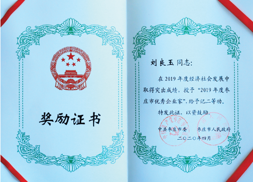近日,棗莊市召開全市經濟社會發(fā)展總結表彰暨“重點工作攻堅年”動員大會,集團公司黨委書記、董事長劉良玉等10位企業(yè)家榮膺“2019年度棗莊市優(yōu) 秀企業(yè)家”稱號,并給予記二等功。
