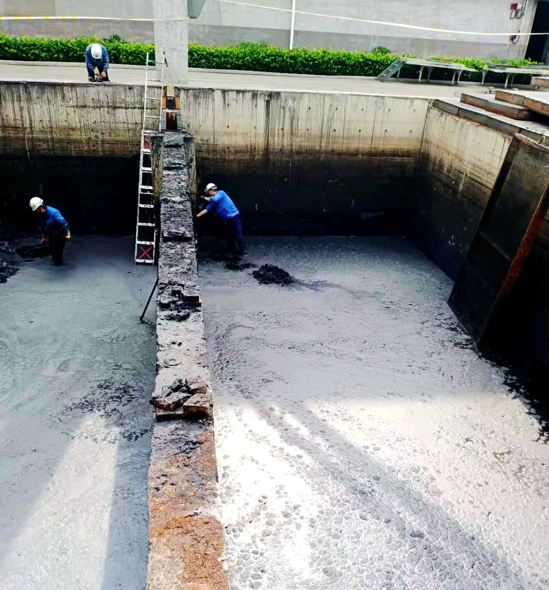 因循環(huán)水系統運行時間較長,造成循環(huán)水池內積存大量淤泥,清淤時只能一桶一桶往外清運,生產一班合理分工,兩人一組,一人在池內清理另一人在池外提運,配合默契,不分你我。