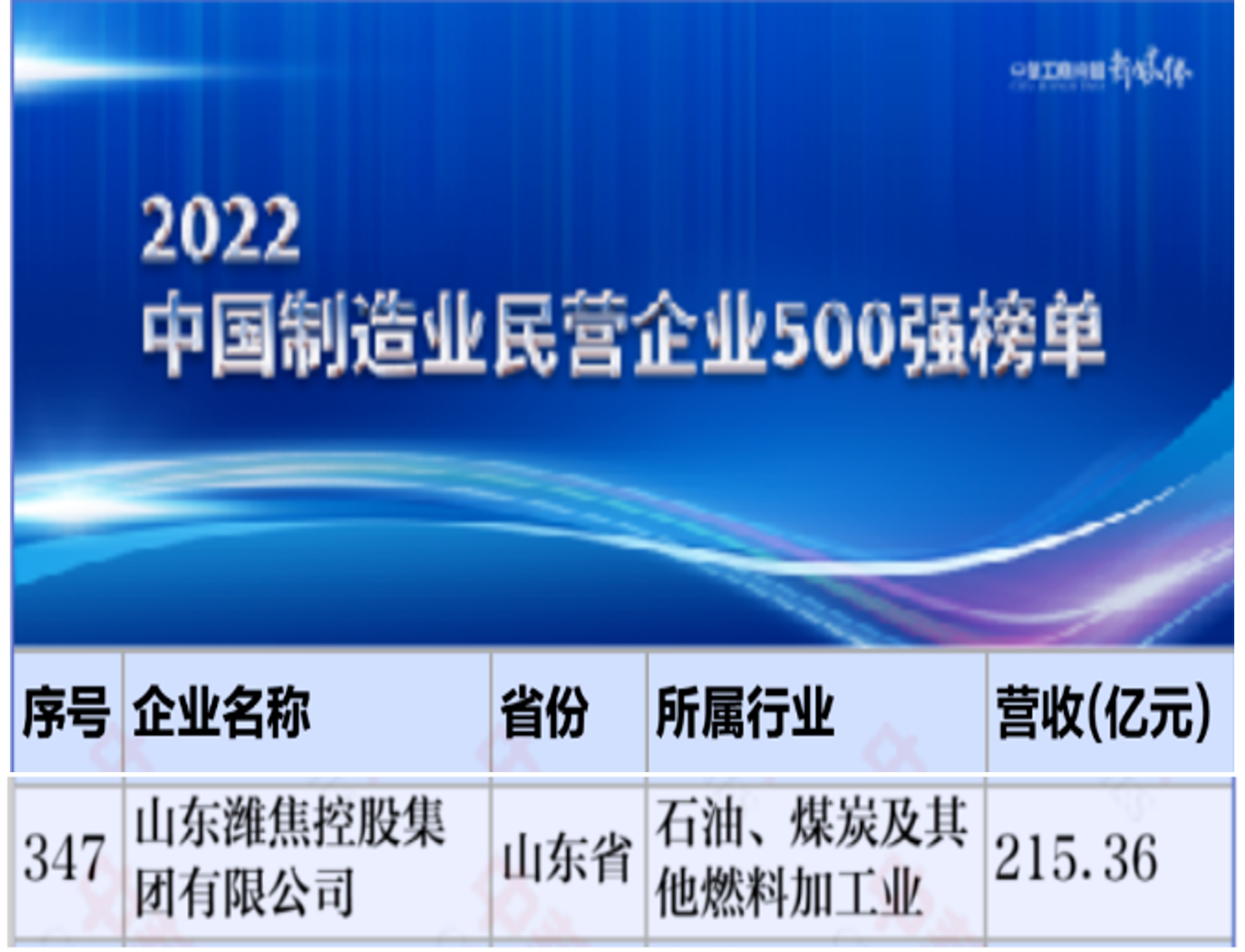 近日,2022年山東民營企業(yè)100強、2022年中國制造業(yè)民營企業(yè)500強榜單相繼發(fā)布,集團公司再度登榜,分別位列第63位、347位。