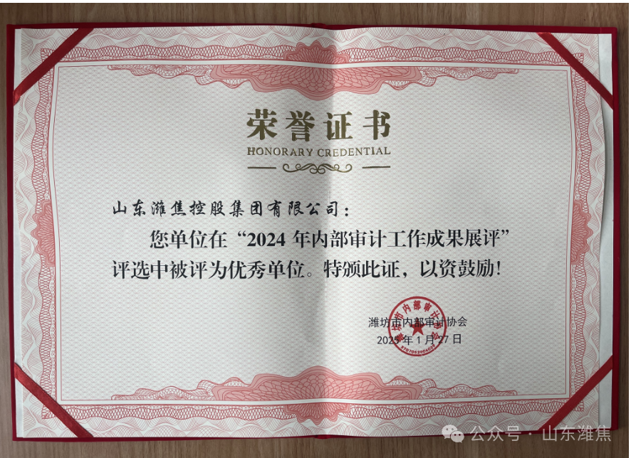 近日,濰坊市內(nèi)部審計協(xié)會組織2024年全市內(nèi)部審計工作成果展評,集團公司榮獲“2024年內(nèi)部審計工作成果展評優(yōu) 秀單位”稱號。