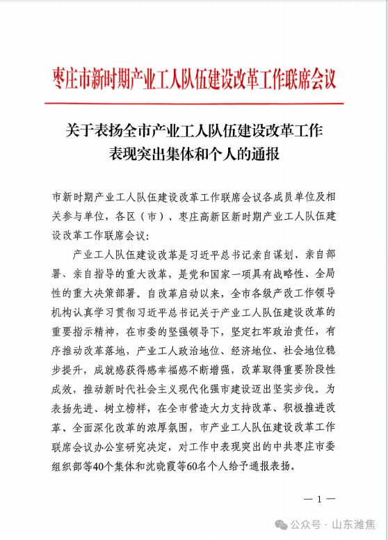 11月27日,棗莊市新時(shí)期產(chǎn)業(yè)工人隊(duì)伍建設(shè)改革工作聯(lián)席會(huì)議公布表彰名單,薛城能源公司榮獲“棗莊市產(chǎn)業(yè)工人隊(duì)伍建設(shè)改革工作表現(xiàn)突出集體”稱號。