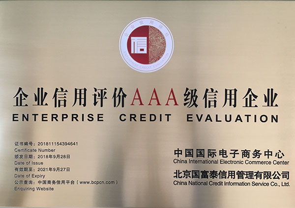 企業(yè)信用評(píng)級(jí)AAA級(jí)信用企業(yè)